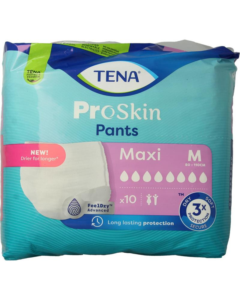 Tena Proskin pants super biedt zachte, comfortabele incontinentiebroekjes voor vrouwen en mannen, ideaal voor overdag en ’s nachts. In tegenstelling tot standaard verband voor volwassenen beschikt TENA ProSkin Pants over technologieën om vocht weg te leiden, te zorgen voor een droog gevoel en bescherming te bieden tegen doorlekken en ongewenste geurtjes. Dankzij FeelDry Advanced™ wordt vocht snel en effectief weggeleid van het oppervlak en de super absorberende kern sluit het vocht in voor een gezonde huid. Deze wegwerpbroekjes zijn gemaakt van ademende materialen die aanvoelen als textiel, met een uitstekende absorptie. Het broekje past net zo goed als normaal ondergoed en bevordert een onafhankelijk, actief dagelijks leven.