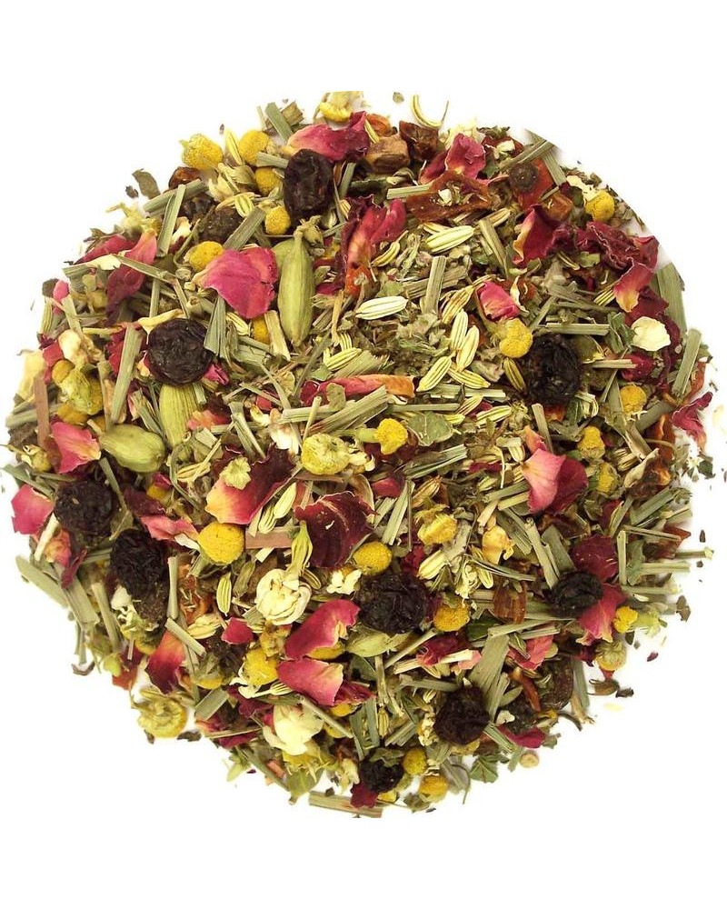 krent, melisseblad, rozenbottelschil, venkel, lemongrass, rozenbloesem, kardemom, kamillebloesem, pepermuntblad, salieblad, nootmuskaat