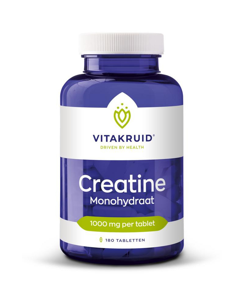 Creatine is een lichaamseigen stof die we deels via onze voeding binnen krijgen en deels wordt het aangemaakt door ons lichaam uit de aminozuren: arginine, glycine en methionine. De hoeveelheid creatine die aanwezig is in onze voeding is echter zeer beperkt. Creatine Monohydraat bevat 1 gram creatine per tablet. Om deze hoeveelheden via je voeding binnen te krijgen, zou je dagelijks 100 gram haring (6,5-10 gram per kilo) of 233 gram rundvlees (4,5 gram per kilo) moeten consumeren.