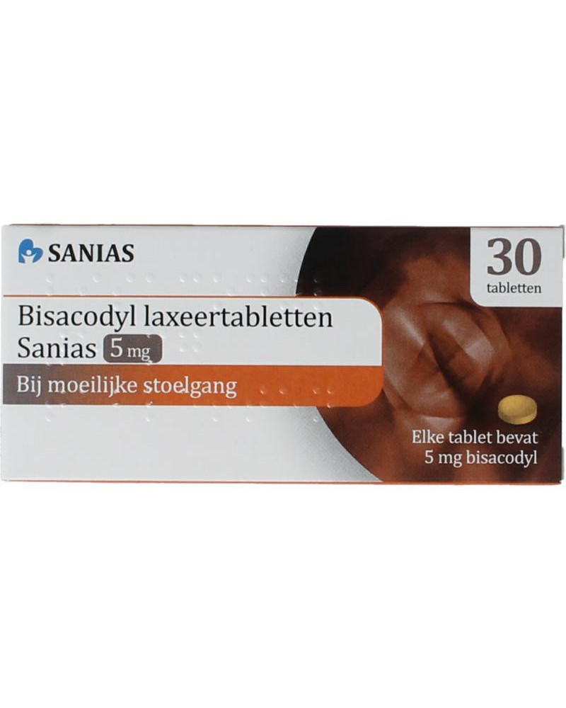 Hierdoor zullen de darmbewegingen versnellen, waardoor de inhoud van de darmen wordt voortgestuwd. Bisacodyl laxeertabletten Sanias 5 mg, maagsapresistente tabletten geven 6 tot 12 uur na inname een zachte ontlasting.