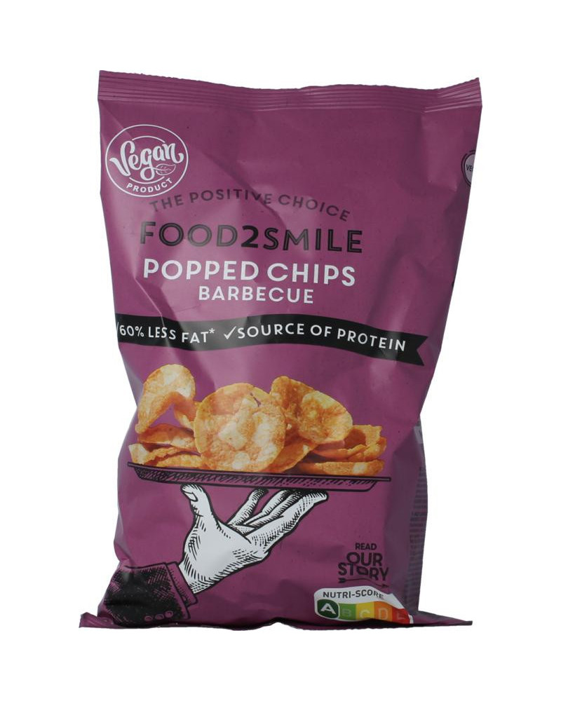 SOJA stukjes (54,6%) (SOJA bloem, tapiocazetmeel, zout), Aardappelstukjes (23,4%) (gedroogde aardappel, aardappelzetmeel, rijstmeel, zout), zonnebloemolie, BBQ smaakstoffen (malto-dextrine, natuurlijke smaakstoffen, uienpoeder, zout, kruiden (gerookte paprika, cayenne), knoflookpoeder, zuurteregelaar: citroenzuur, tomatenpoeder, antioxidant: rosemarijnextract.