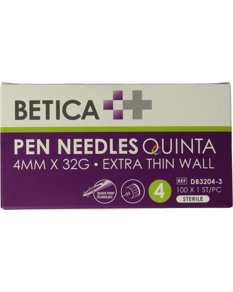 Betere doorstroming van de insuline. Het is belangrijk dat de insuline zo soepel mogelijk doorstroomt bij de injectie. Ook draagt dit bij aan meer injectiecomfort en een kortere injectieduur. Daarom hebben Betica-pennaalden een (extra) dunne naaldwand. Zo is de binnenste diameter zo groot mogelijk in verhouding tot de dikte van de pennaald.
