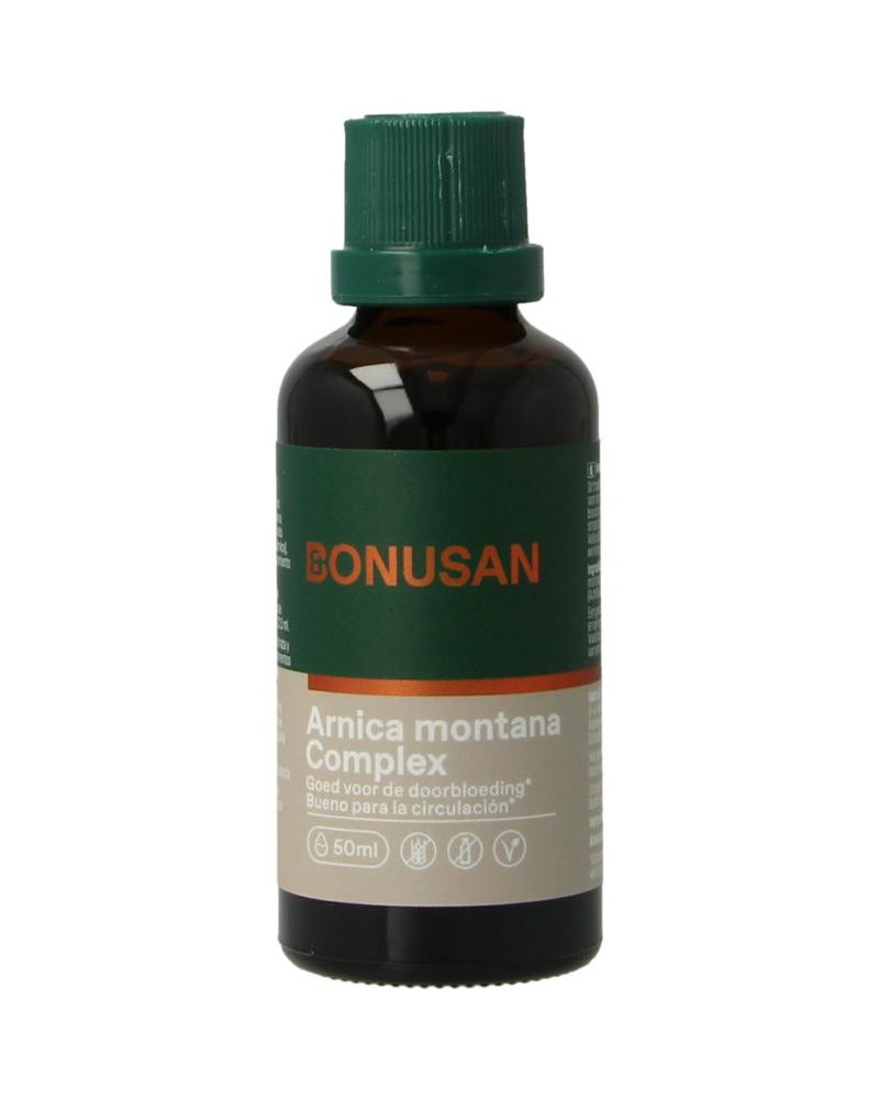 Arnica montana (valkruid) rhizoma, duizendblad (Achillea millefolium). Alcoholgehalte 82% v/v.