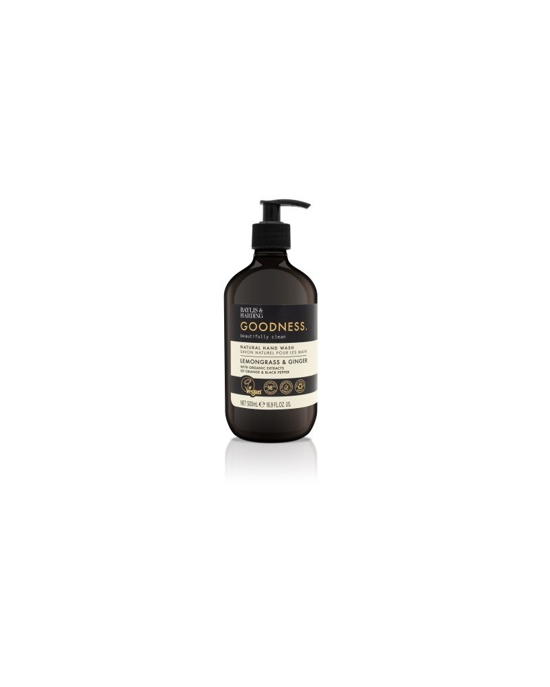 Baylis & Harding Goodness Hand Wash Lemongrass & Ginger is een vloeibare handzeep met de frisse geur van gember en citroengras. De geur van citroengras en gember, waarvan bekend is dat het de zintuigen oppept, gecombineerd met zwarte peper, citrus en bergamot zorgt voor extra frisheid. De kruidige ondertoon van nootmuskaat en kaneel, verrijkt met extracten van sinaasappel, zwarte peper, vitamine C en citroengrasolie maken van het wassen van de handen een moment om van te genieten.