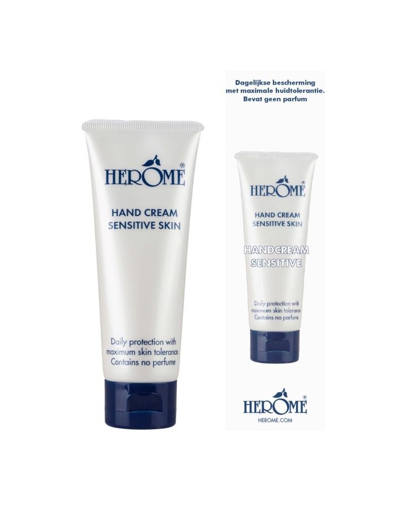 Komkommer extract heeft een extra verfrissend en verzachtend effect op de handhuid. Daarbij werkt het Kamille extract kalmerend en helpt het irritaties te voorkomen. De Herôme Hand Cream Sensitive Skin is PH-neutraal en bevat geen parfum.