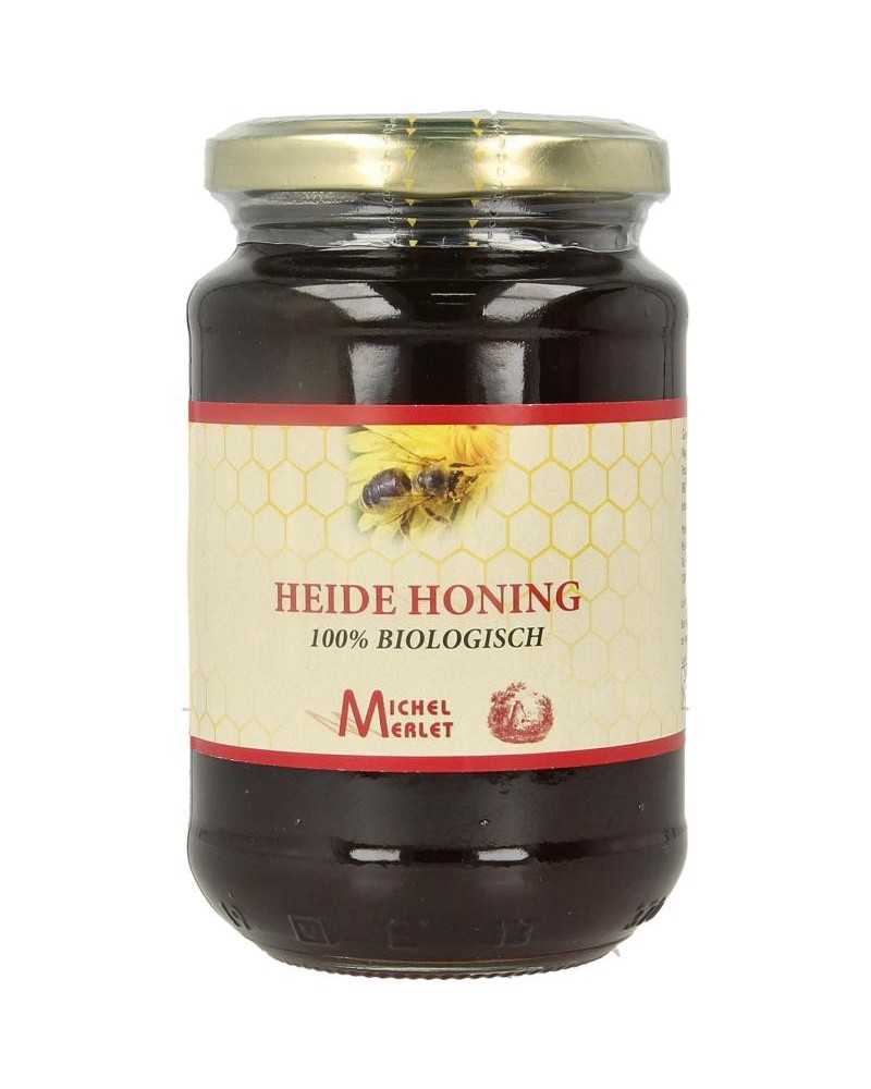 Heerlijke heidehoning van ‘bijenkoning’ Michel Merlet. Intens en aanhoudend aroma, uitgesproken en pittige smaak. Bevat natuurlijke bestanddelen zoals enzymen, mineralen, vitaminen en stuifmeel.