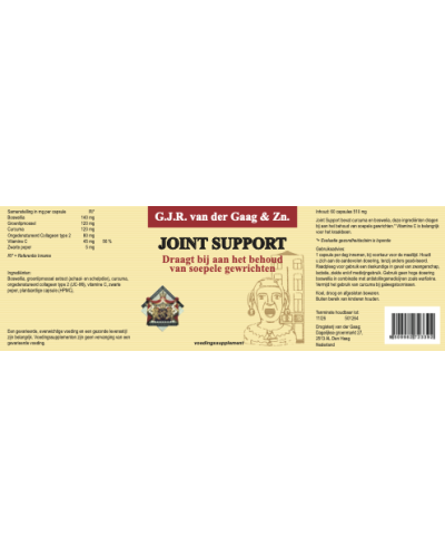 Joint Support is speciaal samengesteld ter ondersteuning van het behoud van soepele gewrichten. Het bevat een krachtige combinatie van boswellia, curcuma en groenlipmossel, aangevuld met vitamine C die bijdraagt aan de normale vorming van collageen voor de werking van het kraakbeen. Ideaal voor wie actief wil blijven en zijn of haar bewegingsvrijheid wil ondersteunen.