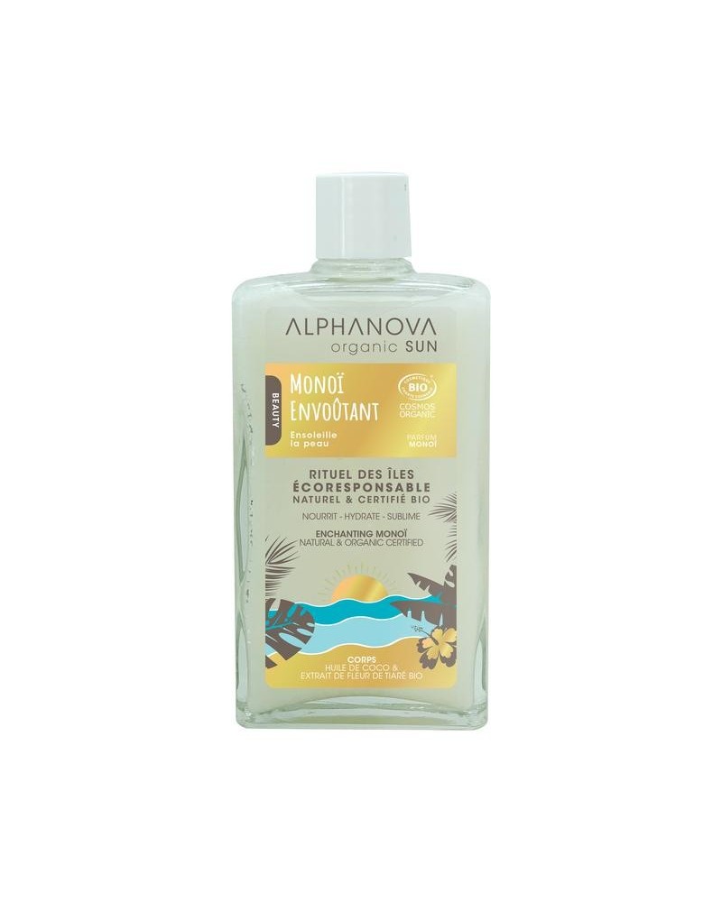 De ALPHANOVA SUN BIO Enchanting Monoi Oil Spray is meer dan alleen een verzorgingsproduct; het is een ervaring. Met zijn natuurlijke ingrediënten en verleidelijke monoi-geur, biedt het een moment van pure verwennerij. Of je nu op zoek bent naar hydratatie, voeding of gewoon een moment van ontspanning, deze olie is jouw perfecte metgezel. Ontdek de kracht van de natuur en geef je huid de verzorging die het verdient.