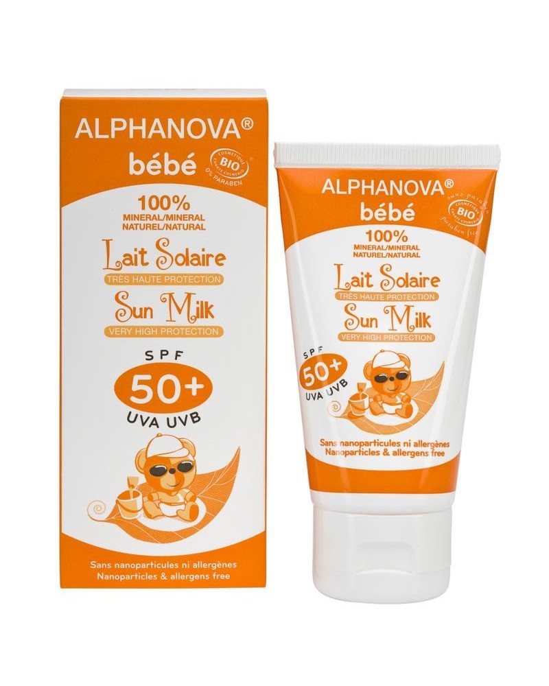 Alphanova Sun Bio SPF 50+ Bebe Hypoallergeen Sun Milk is de perfecte keuze voor wie op zoek is naar een betrouwbare en natuurlijke zonnebescherming. Deze zonnebrandmelk is speciaal ontwikkeld voor de gevoelige huid van baby's, maar is ook ideaal voor kinderen en volwassenen met een zeer gevoelige huid. Verrijkt met 100% minerale filters, biedt deze zonnebrand een intensieve bescherming tegen schadelijke UVA- en UVB-stralen. Dankzij de natuurlijke ingrediënten zoals aloë vera en jojoba-olie, hydrateert en verzorgt het de huid zonder deze te irriteren. Bovendien is het product dermatologisch getest en volledig vrij van parfum, alcohol, en chemische toevoegingen zoals fenoxyethanol.