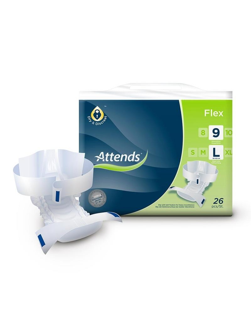 Attends Flex zijn alles-in-één incontinentieverbanden met heupband geschikt voor zware urine- en/ of ontlastingsincontinentie.