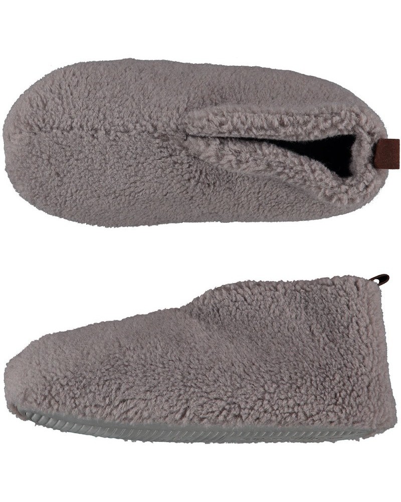 De sloffen van teddystof zijn heerlijk zacht van binnen en hebben een stevige maar flexibele zool van rubber.