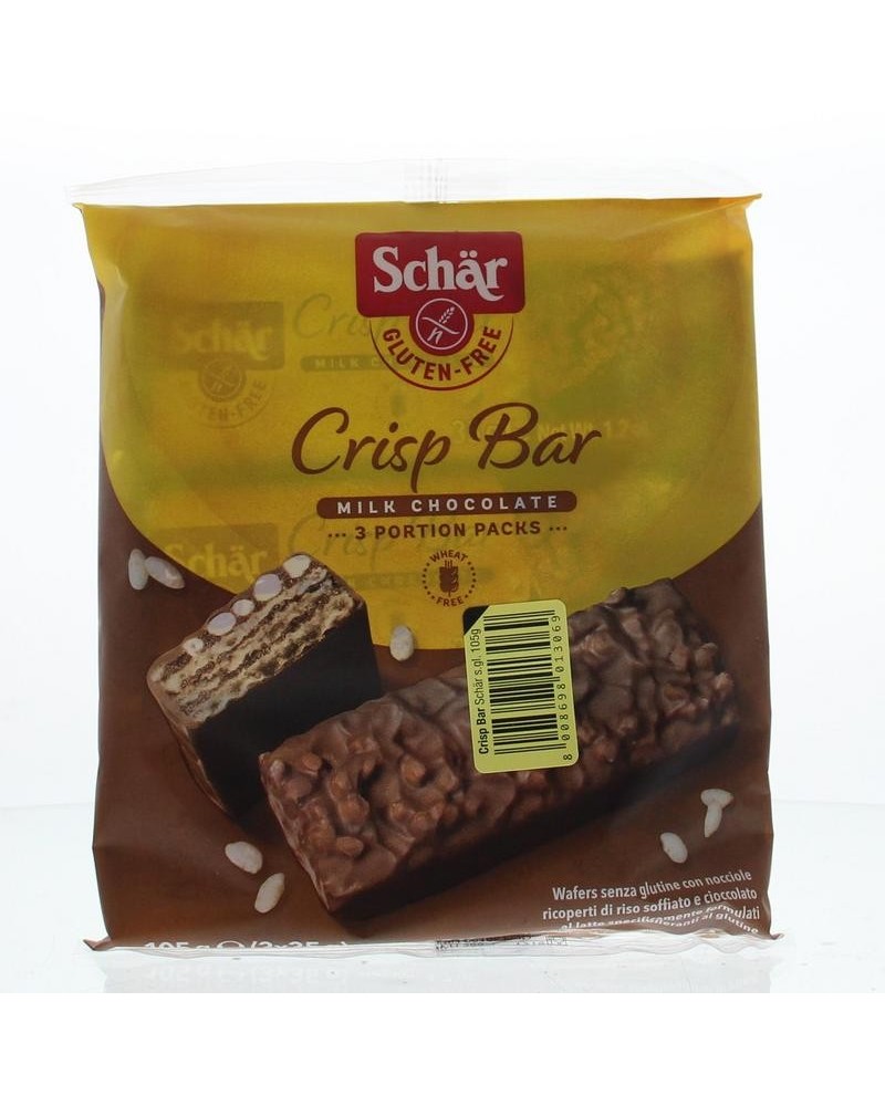 De crisp bar van Schär is een glutenvrije reep met gepofte rijst en chocolade. Lekker knapperig! Een ideaal tussendoortje en handig voor onderweg.