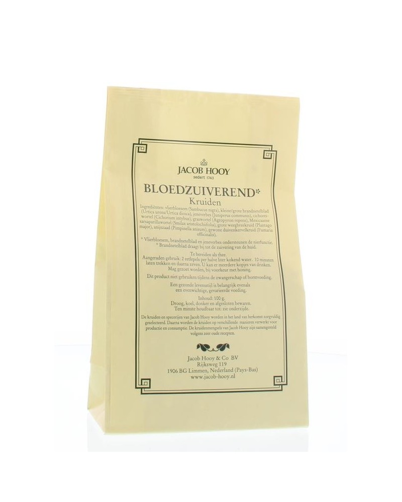 Vlierbloesem (Sambucus nigra), Kleine/grote brandnetelblad (Urtica urens/Urtica dioica), Jeneverbes (Juniperus communis), Cichoreiwortel (Cichorium intybus), Graswortel (Agropyron repens), Mexicaanse sarsaparillawortel (Smilax aristolochiifolia), Grote weegbreekruid (Plantago major), Anijszaad (Pimpinella anisum), Gewone duivenkervelkruid (Fumaria officinalis).