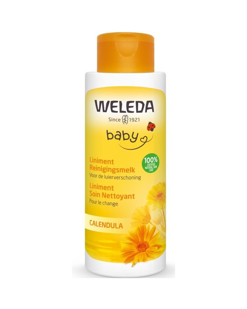 Liniment is een traditioneel Frans mengsel van olijfolie en kalkwater. Weleda heeft aan dit recept biologisch Calendula-extract en pure plantenoliën toegevoegd. De zachte emulsie reinigt de billetjes gemakkelijk en laat een prettig vet laagje achter. Een duurzaam alternatief voor vochtige babydoekjes.