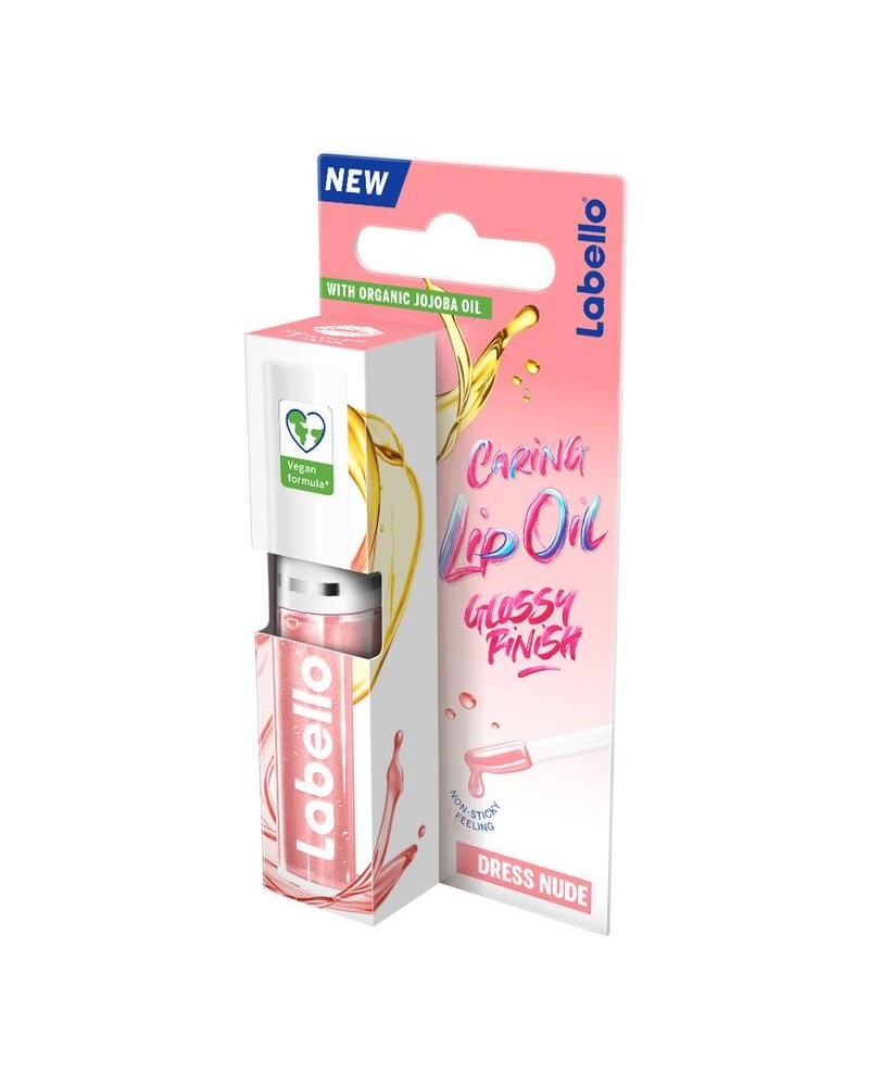 Labello Caring Lip Oil Clear Glow, de nieuwe innovatieve lip oil geeft je lippen onmiddellijk hydratatie en geeft een glanzende finish, laat je lippen zacht & verzorgd aanvoelen en er voller uitzien. De verzorgende formule is vegan en gemaakt met natuurlijke Jojoba Olie. Voor mooie, verzorgde lippen.