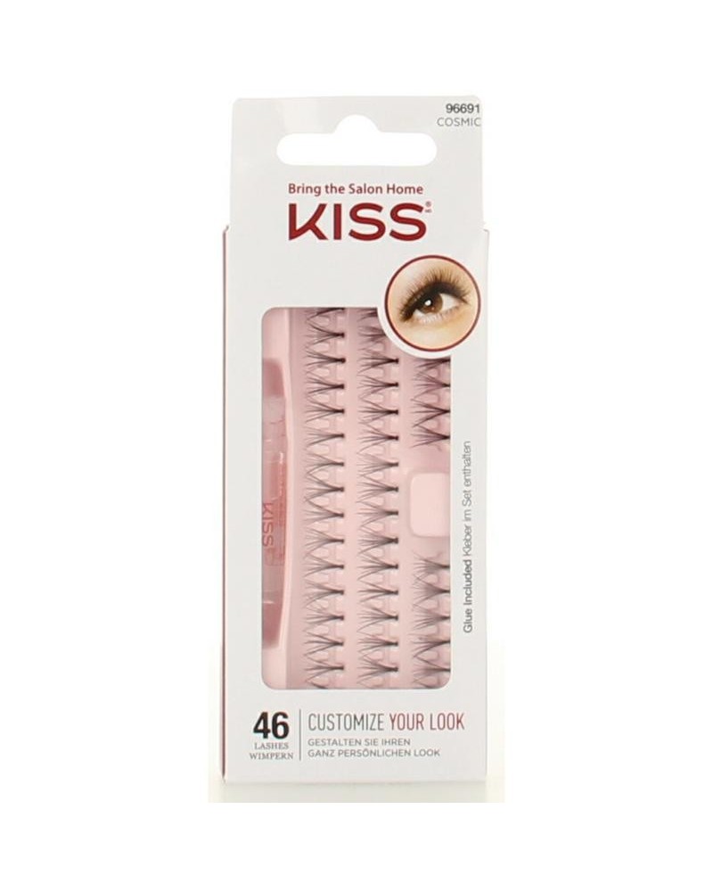 Leg de wimpers op uw natuurlijke wimpers en controleer als eerste de pasvorm. Trim de wimpers indien nodig. Breng daarna KISS-lijm aan op de wimperrand van de kunstwimper: wacht ongeveer 30 seconden totdat de lijm enigszins transparant en kleverig is. Breng vervolgens de wimpers aan langs de natuurlijke wimperlijn. Druk de wimper goed aan en houd nog even vast zodat de lijm goed kan opdrogen.