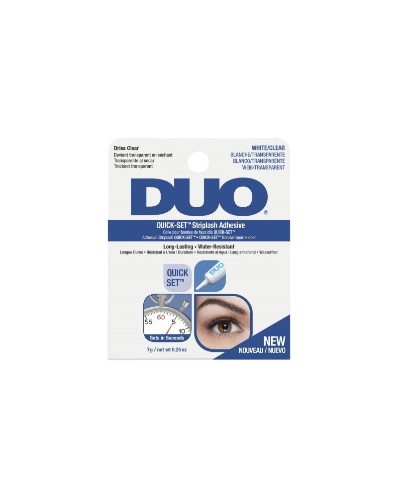 DUO® Quick-Set Striplash Adhesive White/Clear is een langhoudende, transparante wimperlijm waarmee binnen enkele seconden de kunstwimpers stevig en langdurig kunnen worden aangebracht.