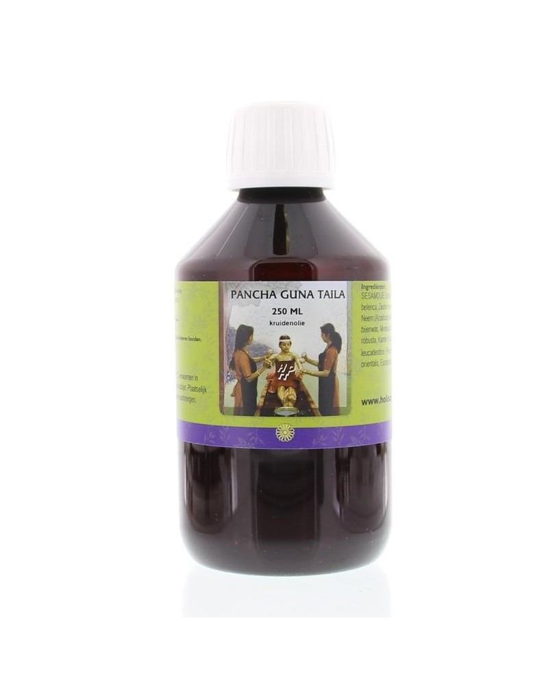 Stijve en stroeve spieren maakt u met een verkwikkende massage snel weer soepel. Pancha Guna Taila is een geurige massage-olie vol natuurlijke kruiden en etherische olieën. Deze rijke bestanddelen verfrissen en ontspannen vermoeide spieren en worden direct door de huid opgenomen.