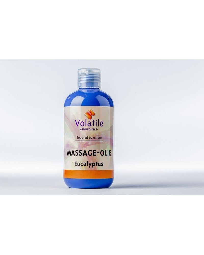 Massagelolie van kajeput en eucalyptus in een basis van 10% jojoba en 90% amandelolie.