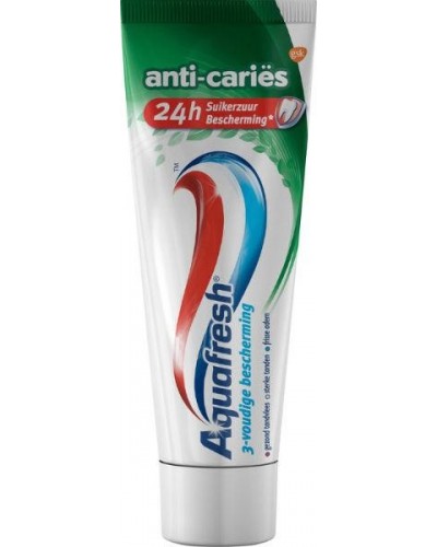 Aquafresh® Anti-cariës is een 3-in-1 tandpasta voor het hele gezin met een frisse smaak en Suikerzuur Bescherming*.