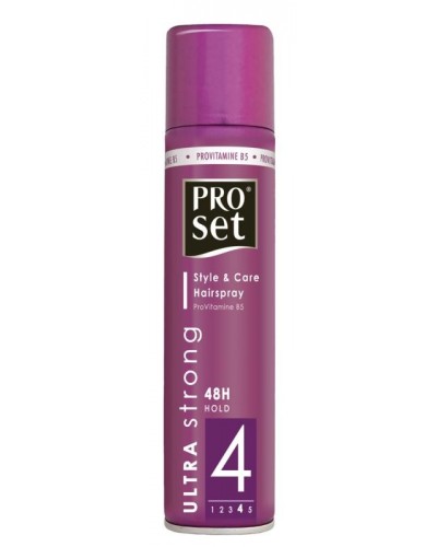 ProSet Hairspray Mega Strong geeft je haar een long lasting hold, en heeft fixatiekracht 5.