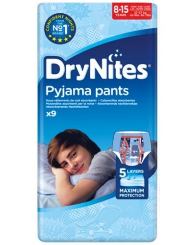 Ontdek het DryNites® absorberende nachtbroekjes voor 's nachts voor kinderen van meer dan drie jaar oud.