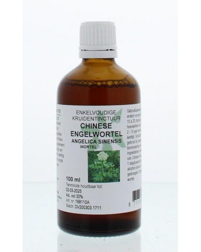 Enkelvoudige kruidentinctuur gemaakt met 100 gram gedroogde wortels van Angelica sinensis / Chinese Engelwortel.