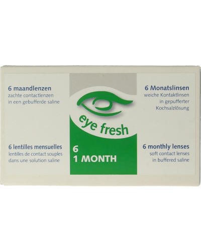 Verwijderen van verlanglijst Toevoegen aan verlanglijst Maandlenzen -5.50 Gezichtsverzorging Prijs € 18,90 Bestellen De Eye Fresh Maandlenzen zijn kwalitatief hoogwaardige, zachte contactlenzen gemaakt van het nieuwste en beste materiaal dat op dit moment bekend is.