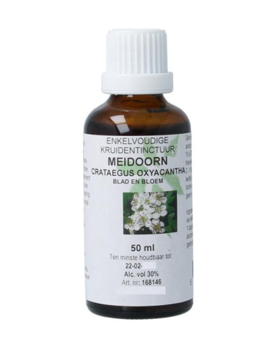 Enkelvoudige kruidentinctuur gemaakt met 100 gram gedroogd blad en bloemen van Crataegus oxyacantha / Meidoorn.