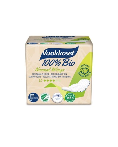 Het Vuokkoset Maandverband Normal wings is gemaakt van 100% biologische materiaal.