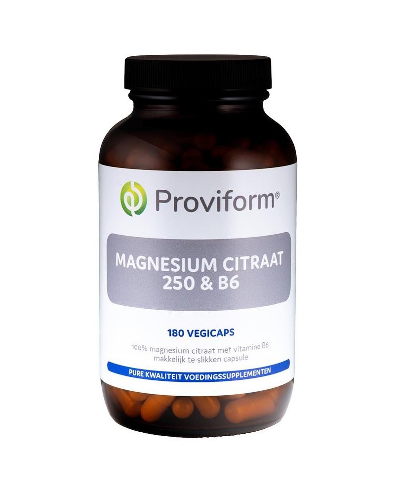 Magnesium in de goed opneembare, organische vorm van magnesiumcitraat. Proviform magnesiumcitraat bevat de actieve vorm van vitamine B6 (P-5-P)met een optimale biologische beschikbaarheid. Magnesiumcitraat is beter opneembaar dankzij pyridoxaal-5-fosfaat (B6).