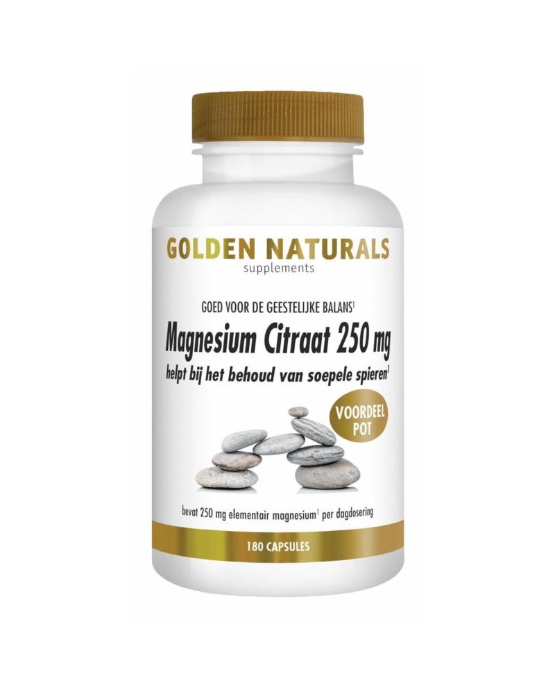 Golden Naturals Magnesium citraat 250 mg bevat 250 mg elementair magnesium per dagdosering.