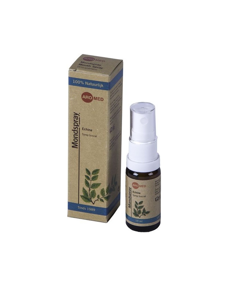 Echina Mondspray bevat Echinacea, pepermunt, salie, tea tree en kruidnagel. Met de spray kan deze combinatie van etherische oliën direct op het betrokken worden aangebracht. Dit helpt bijvoorbeeld bij de verzorging van rode of witte plekjes in de mondholte.