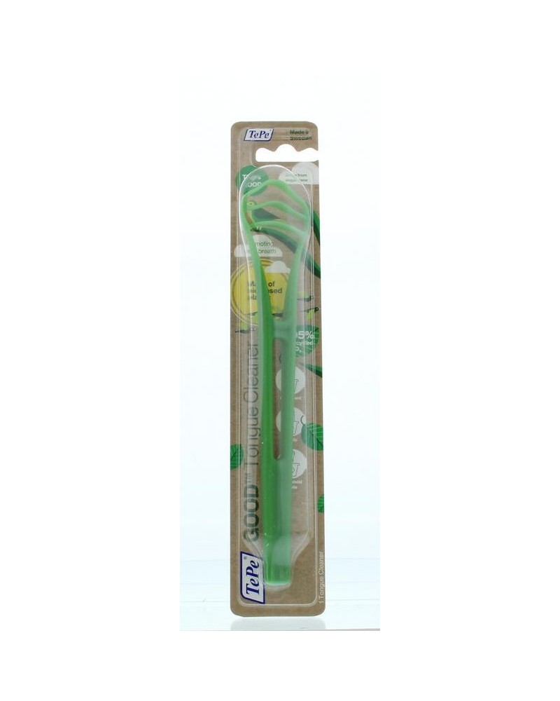 Het ontwerp komt overeen met de natuurlijke vorm van de tong en reinigt het achterste gedeelte gemakkelijker. De smalle vorm vermindert braakneigingen. De TePe Tongschraper heeft drie licht geronde reinigingsvlakken die voor een ‘drievoudig-effect’ zorgen. Dit betekent dat één beweging voldoende is voor een efficiënte reiniging. De tongschraper is gemaakt van milieuvriendelijk polypropyleen en is vaatwasser bestendig.