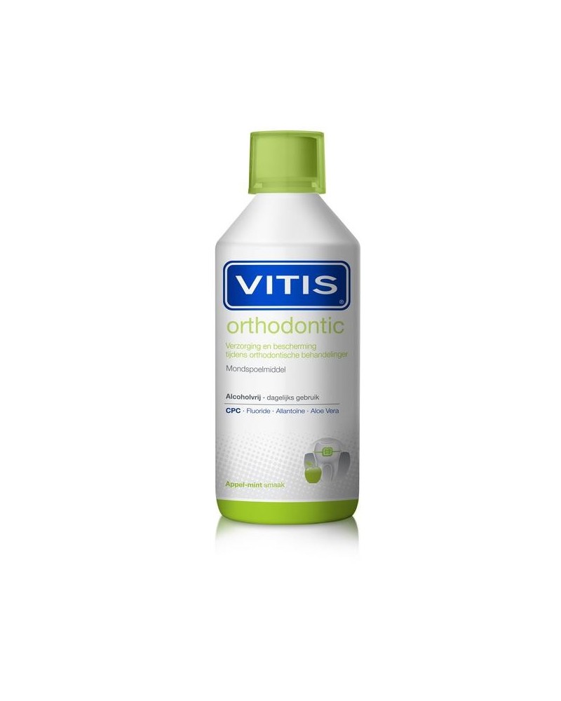 Specificiek ontwikkeld voor het verbeteren van de mondverzorging tijdens het dragen van orthodontische apparatuur. Vitis Orthodontic Mondspoelmiddel beschermt tegen gaatjes (cariës), tandvleesproblemen en vermindert irritaties aan de zachte weefsels door de aanwezigheid van de apparatuur. Bevat Natriumfluoride