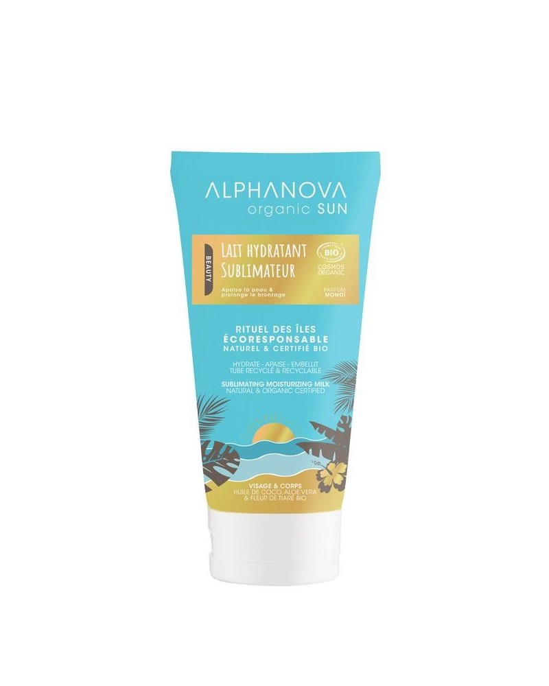 Ervaar de ultieme verzorging na een zonnige dag met de ALPHANOVA SUN BIO Sublimating body lotion. Deze biologische bodylotion is speciaal ontwikkeld om de huid te kalmeren en te hydrateren na blootstelling aan de zon. Dankzij de toevoeging van Bisabolol worden gevoelens van oververhitting verzacht, terwijl de huid diep gevoed wordt. De lotion helpt de soepelheid en zachtheid van de huid te herstellen en verlengt op natuurlijke wijze je bruine teint. Met een verslavende zonnegeur van Monoi, biedt deze lotion niet alleen verzorging, maar ook een zintuiglijke ervaring.