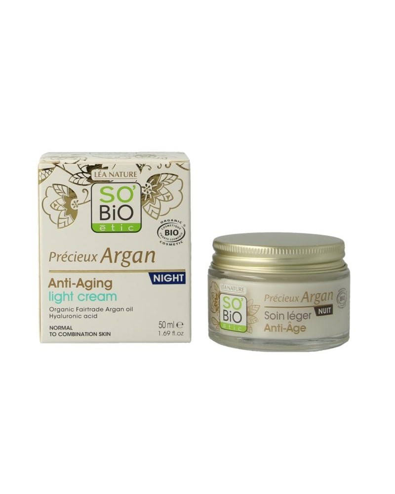 De Anti-Aging Night fluid vormt de perfecte aanvulling voor ’s nachts als je een normale of gecombineerde huid hebt. Of bijvoorbeeld fan bent van luchtige formules. Zeker in lente en zomer, vinden velen immers een rijke crème of olie voor ’s nachts te vol en dan vormt deze luchtige crème met fluide textuur het perfecte alternatief. De formule van de Précieux Argan Night fluid bevat naast argan olie ook hyaluronzuur dat helpt het vochtgehalte van de huid op peil te brengen én houden. Deze vegan fluide is zodanig slim geformuleerd dat deze heel snel intrekt en de huid daarna dus niet vettig aanvoelt – wel zo prettig als je hoofd het kussen raakt! Ecocert gecertificeerd, vegan geformuleerd en vrij van microplastics.