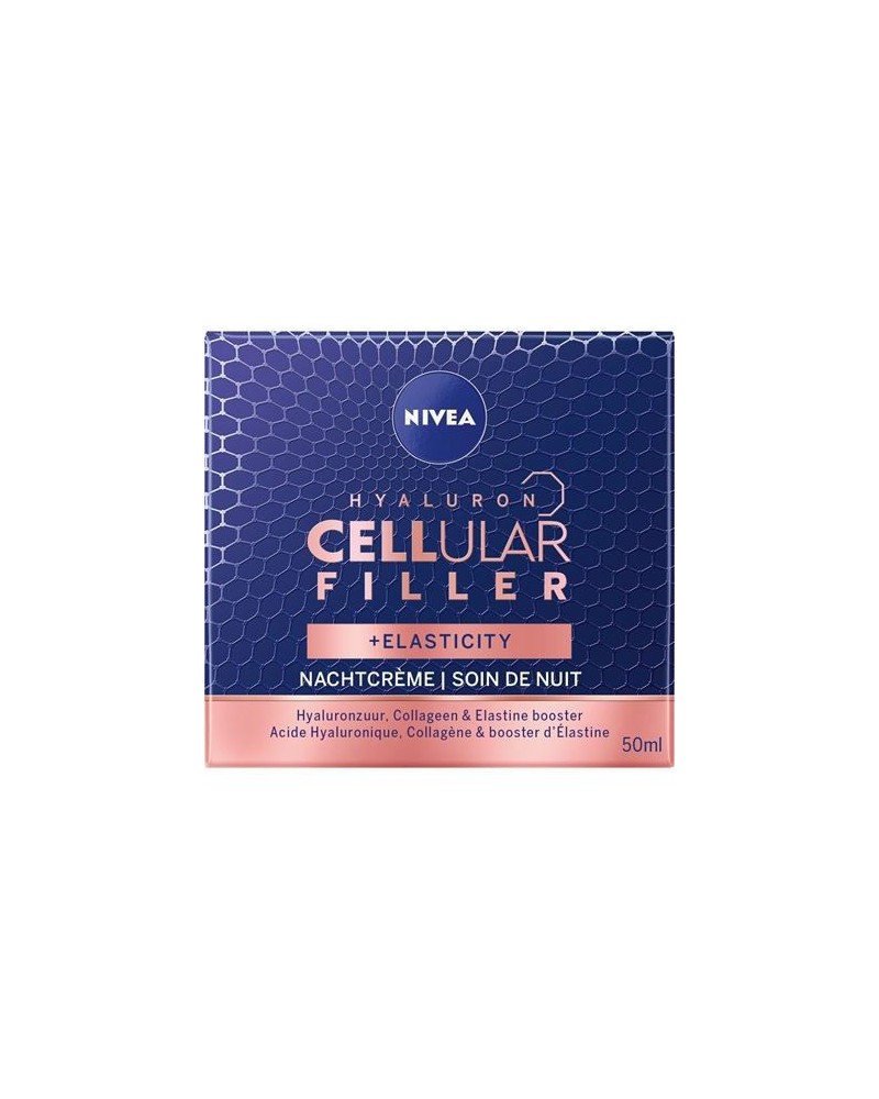 De formule bevat een huidvriendelijke combinatie van de cel-activerende ingrediënten Hyaluronzuur, Collageen en Elastine booster: Hyaluron CELLular Filler +Elasticity Nachtcrème.