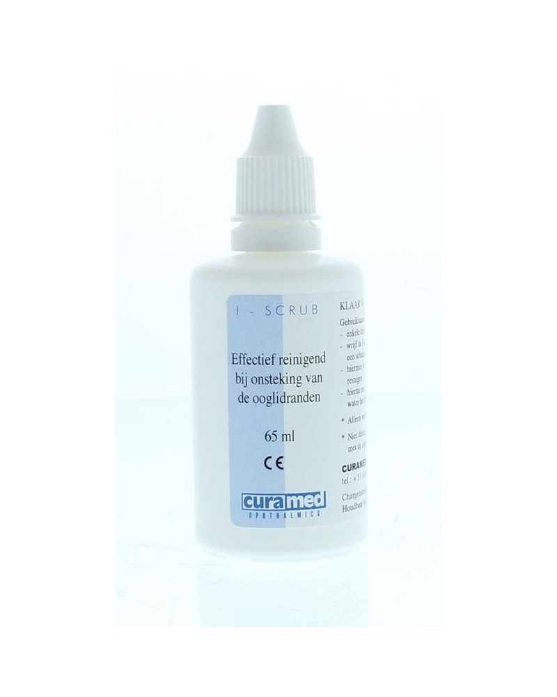 Enkele druppels I-scrub op een gaasje. Wrijf de I-scrub in het gaasje zodat een schuimlaagje ontstaat. Hiermee de ooglidrand masseren en reinigen. Hierna met een nieuw gaasje en lauw water het ooglid schoonwrijven.