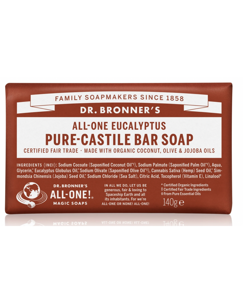 Aards en warm, met een krachtige uitbarsting menthol. Puur geparfumeerd met biologische eucalyptusolie, is onze Eucalyptus Pure-Castilië Bar zeep gemaakt met gecertificeerde fairtrade ingrediënten en biologische hennepolie voor een zachte, gladde schuim dat de huid niet uitdroogt. 100% biologisch afbreekbaar.