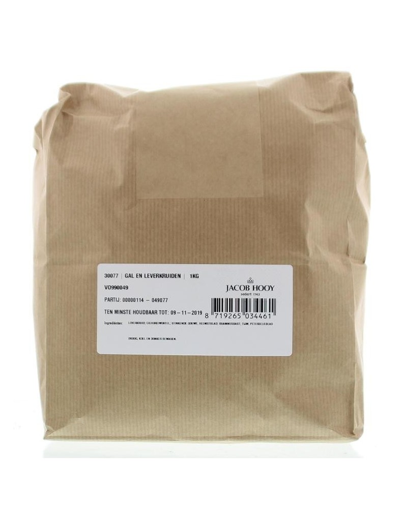 Cichoreiwortel (cichorium intybus) 20%, Leverkruid (agrimonia eupatoria) 20%, Stinkende gouwe (chelidonium majus), Peterselieblad (petroselinum crispum), Tijm (thymus vulgaris), Heemstblad (althaea officinalis), Rhamnusbast (rhamnus frangula)