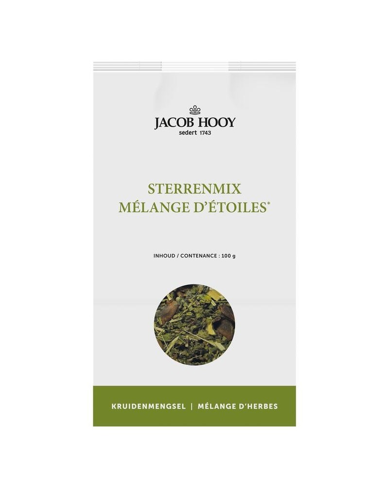 Steranijs (illicium verum), anijszaad (pimpinella anisum), zoethout (glycyrrhiza glabra), kruizemunt (mentha spicata), malvablad (folia malvae), moerasspirea (filipendula ulmaria), jeneverbes (juniperus communis).