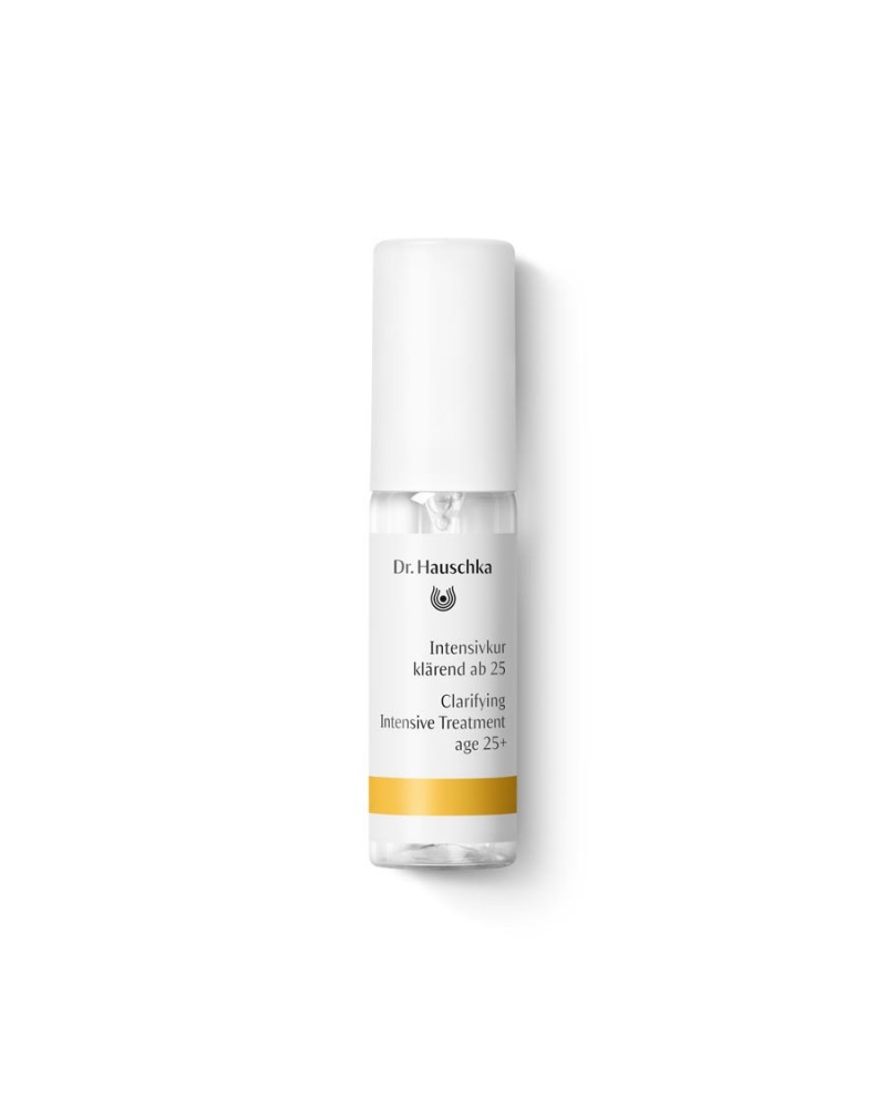De Intensieve Kuren van Dr. Hauschka met een selectie van waardevolle, geritmiseerde stoffen uit de natuur vormen een aanvulling op de basisverzorging. Ze ondersteunen je huid als ze haar evenwicht verloren heeft en een normaliserende stimulans nodig heeft. Intensieve Kuur 25+ jaar werkt effectief voor de onzuivere, volwassen huid die snel last heeft van ontstekingen. De samenstelling van de edelsteen peridoot, wilde cichorei, bingelkruid, natuurlijk zout en toverhazelaar versnelt het herstel van onzuiverheden en verfijnt de teint.