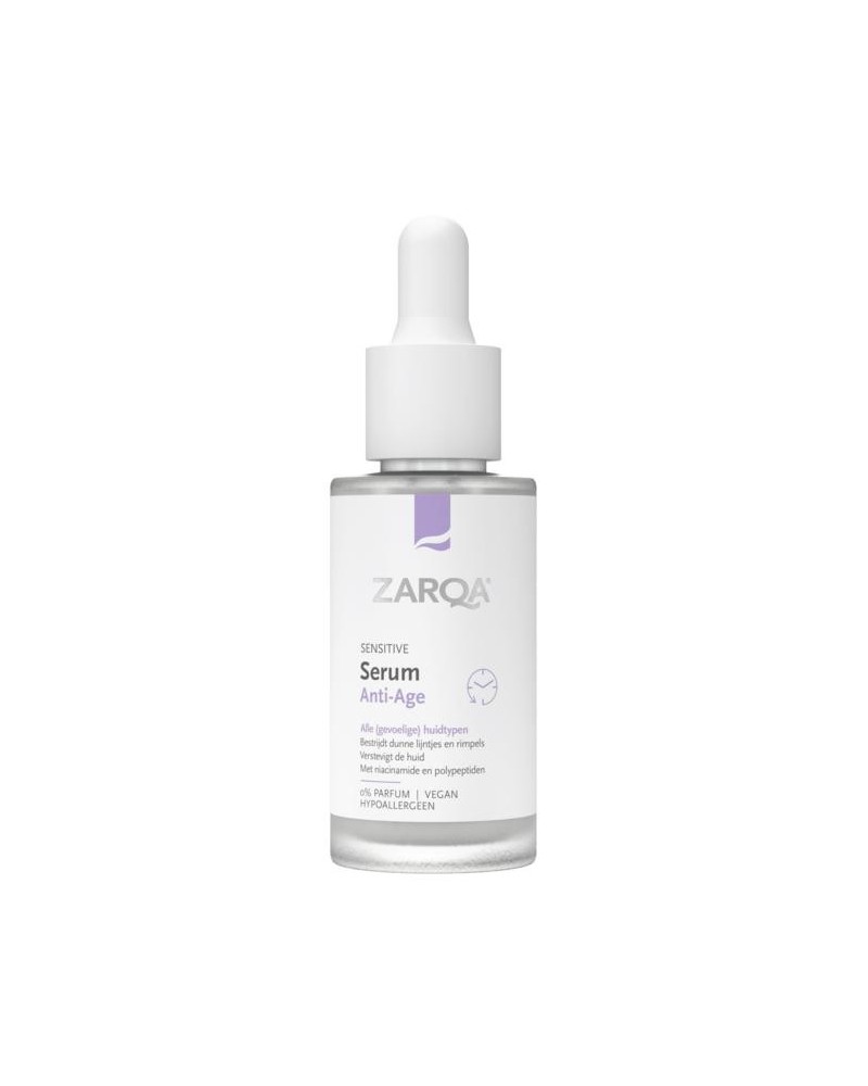 ZARQA Serum Anti-Age met mineralencomplex maakt de huid glad en vermindert rimpels. Het kalmeert en heeft een herstellende werking. Het antirimpelcomplex met polypeptiden bevordert zichtbaar de kwaliteit van de huid door de diepte van rimpels te verminderen en de huidteint en elasticiteit te verbeteren. Het serum met een lichtgewicht textuur trekt snel in tot diep in de huidlagen.