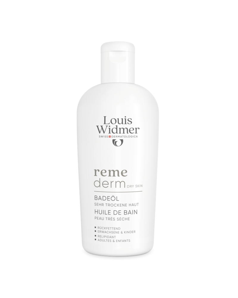 De Louis Widmer Remederm Dry Skin Badolie bestaat uit een evenwichtige samenstelling van natuurlijke oliën. Bernagie- en jojoba olie maken de huid zijdezacht. Bevat geen reinigende bestanddelen, maar heeft een hervettende werking. Deze badolie emulgeert met het water waardoor indringingsvermogen over de hele huid plaatsvindt.