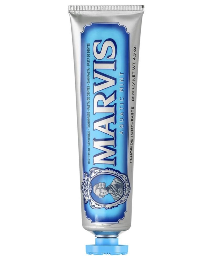 Marvis Classic Aquatic Mint tandpasta is volgens traditionele methode geproduceerd in het Italiaanse Florence. De rijke en romige Marvis Aquatic Mint tandpasta helpt tandplak en oppervlakkige vlekken op een milde wijze te verwijderen voor een wittere, stralende glimlach. Een vleugje zeebries ontmoet het kristalheldere water en de frisheid van Munt.