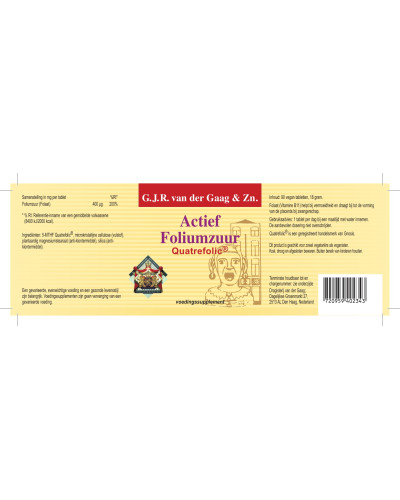 Van der Gaag Actief foliumzuur (Vitamine B11) bevat een hoge dosering van 400 mcg foliumzuur van het gepatenteerde Quatrefolic®.