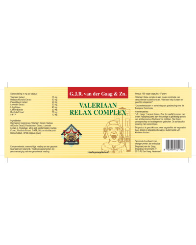 Van der Gaag Valeriaan Relax Complex is een mix van natuurlijke en rustgevende stoffen, waaronder Valeriaan, Magnesium, Citroenmelisse, Passiebloem en Lavendel.