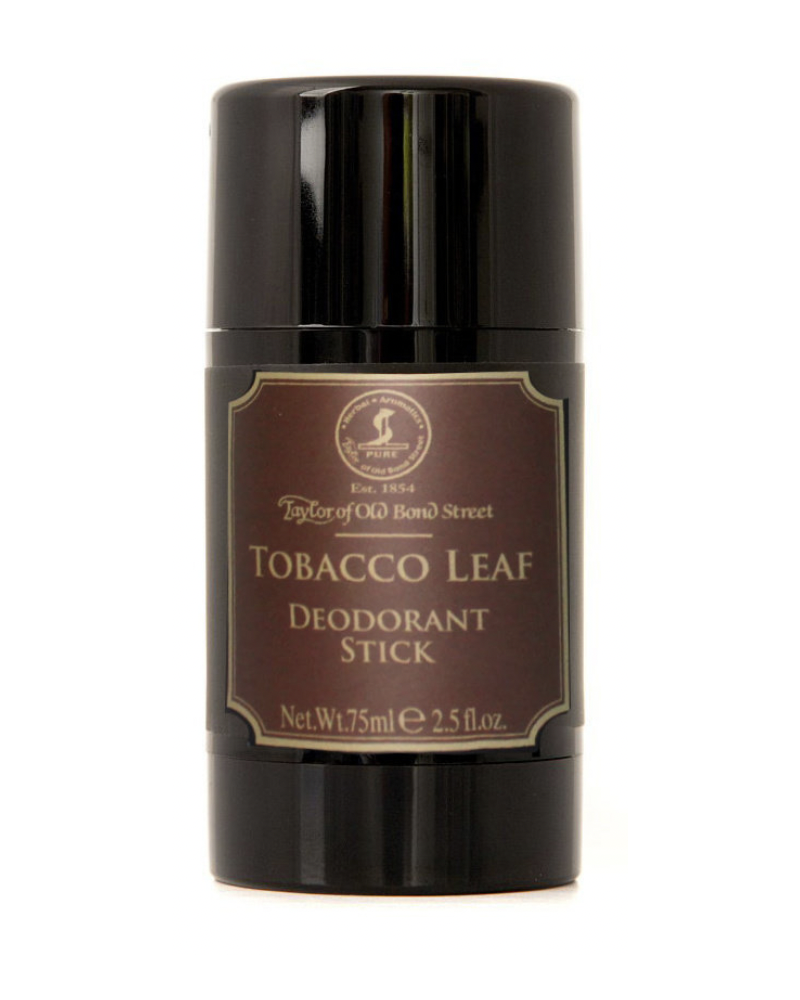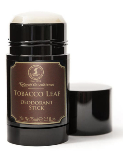 Tobacco Deo Stick 75ml. Geschikt voor ieder huidtype, Deze deodorant laat je oksels fris gedurende de gehele dag, veilig en comfortabel, zonder het gebruik van schadelijke chemicaliën of metalen. Taylor of old Bond Street Tobacco met een kenmerkende tabaksgeur ondersteund door tonen van bergamot en grapefruit met subtiele, aanhoudende tonen van koffie en leer.