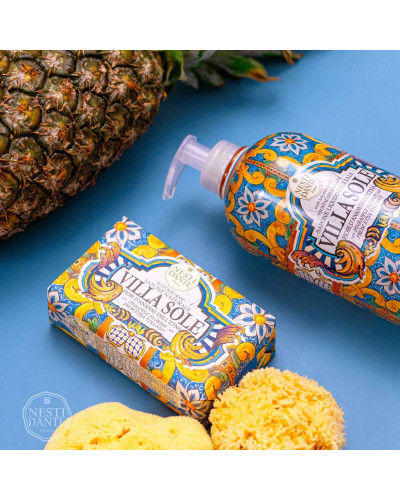Villa Sole is een collectie van natuurlijke zepen ontstaan uit de bloei van bloemen, fruit en citrusvruchten op een zonnig terras met uitzicht op de zee bedekt met majolica tegels. De geuren zijn fris en intens en drukt alle facetten uit van de bloem die een fruitsoort wordt voor een diepe en betoverende sensatie. Fiori D'Ananas dell 'Etna ruikt heerlijk naar zoete, zomerse ananas bloemen van de Etna vulkaan.